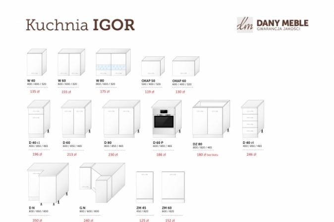 Uwaga! Ceny szafek podane bez kosztu blatu!