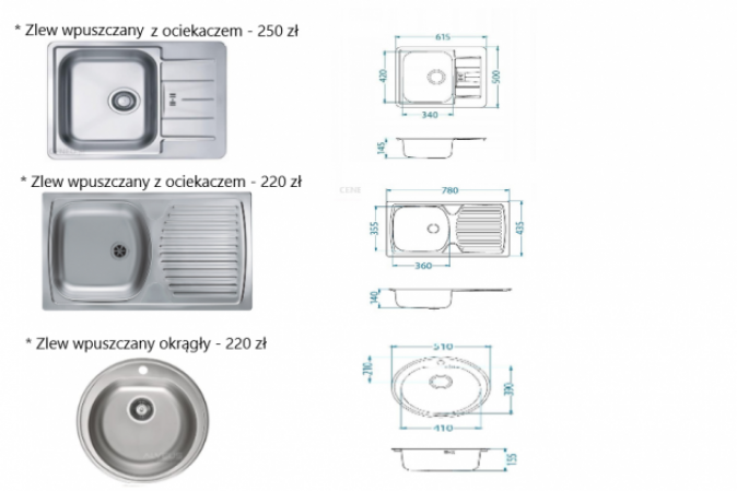 Uwaga! Ceny szafek podane bez kosztu blatu!
