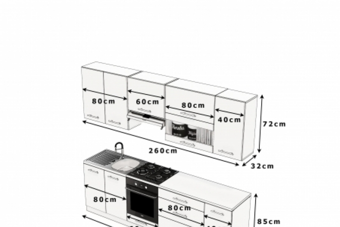 W przypadku braku informacji o wymiarach blatu, zostanie on docięty na każdą szafkę z osobna ( 40cm, 60cm, 80cm )
