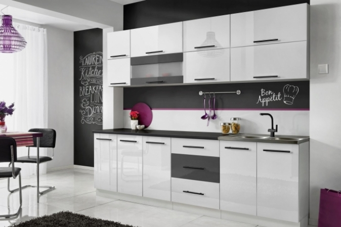 MEBLE KUCHENNE KUCHNIA SZAFKI MODUŁOWE BIAŁY POŁYSK 2,6M RICO