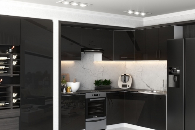 MEBLE KUCHENNE KUCHNIA ZESTAW SZAFKI KOLORADO NAROŻNA CZARNY POŁYSK