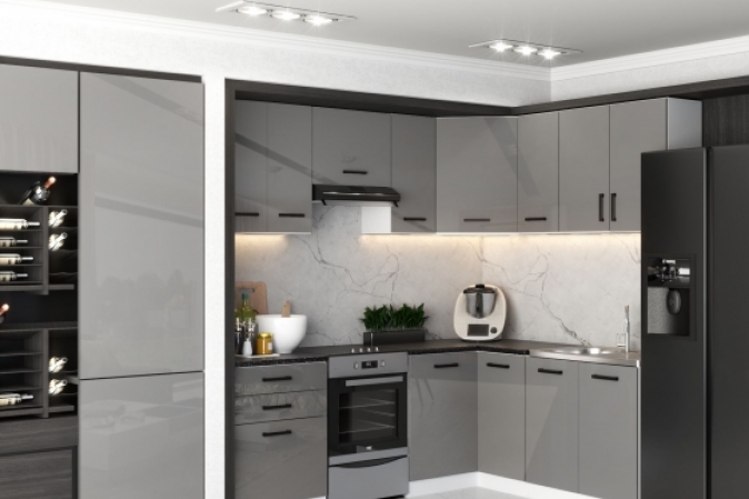 MEBLE KUCHENNE KUCHNIA ZESTAW SZAFKI KOLORADO NAROŻNA SZARY POŁYSK