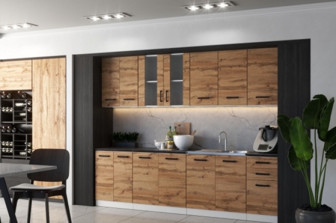 MEBLE KUCHENNE KUCHNIA ZESTAW SZAFKI MODUŁOWE BLAT JOLA 2,6M DĄB WOTAN