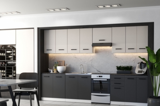 MEBLE KUCHENNE KUCHNIA ZESTAW SZAFKI MODUŁOWE BLAT JOLA 3,2M GRAFIT/KASZMIR