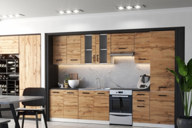 - Modularność: Zestaw meblowy jest elastyczny i modułowy, co umożliwia dostosowanie go do indywidualnych potrzeb i wymiarów kuchni, zapewniając optymalne wykorzystanie dostępnej przestrzeni.