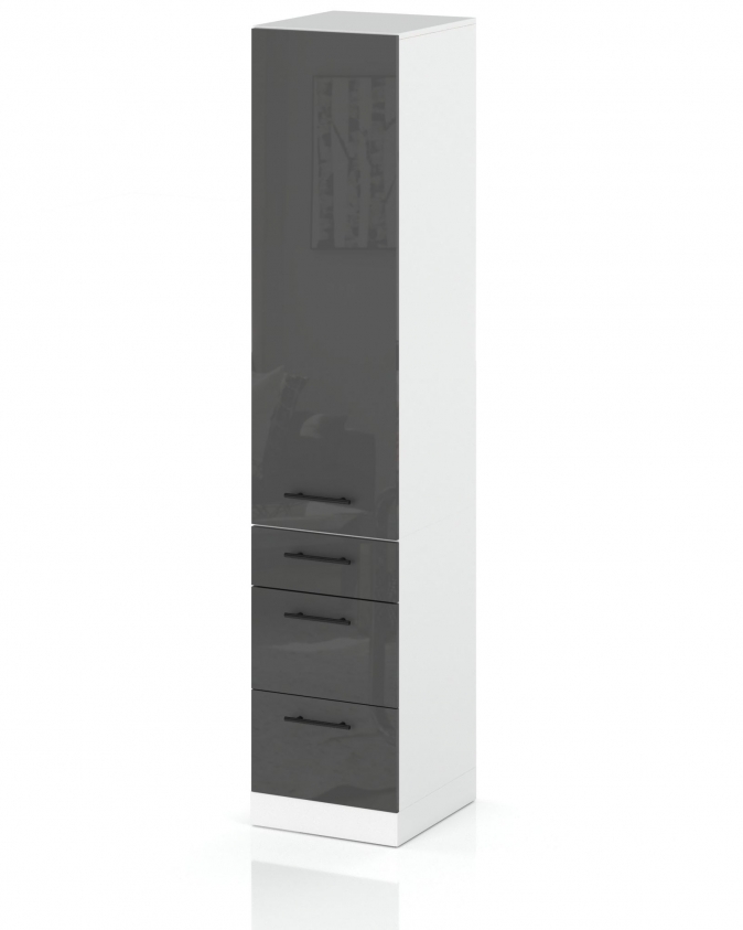 - Wysokość szafki 211cm (nóżki regulowane umożliwiają łatwe dopasowanie przy nierównościach na podłogach)